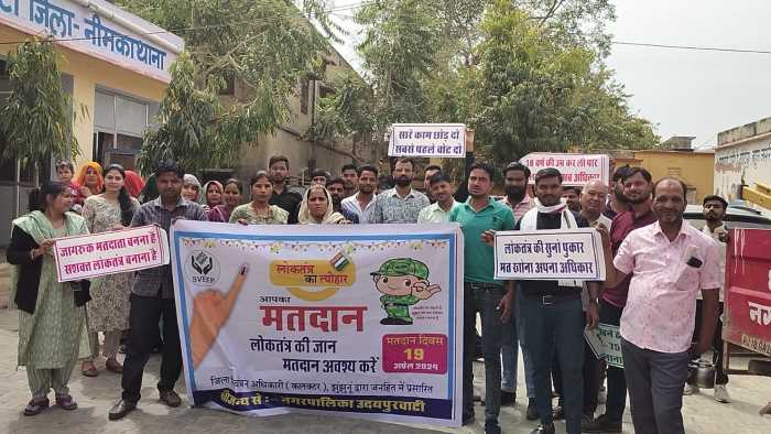 रैली के दौरान पालिका कार्मिकों ने आमजन को स्टीकर, पम्पलेट वितरित कर आगामी 19 अप्रेल को मतदान प्रतिशत बढ़ाएं। रैली में मतदान की महत्वता के बारे में विस्तार से जानकारी दी। नगरपालिका द्वारा स्वीप गतिविधियों के अन्तर्गत बैनर, पोस्टर बनवाकर शहर के मुख्य स्थानों पर लगवाए। इसके साथ ही पालिका द्वारा घर घर कचरा संग्रहण कार्य में लगे हुए पालिका ऑटो टीपरों में चलने वाले हूपरों में मतदान जागरुकता संदेश चलाया जाकर आमजन को अधिक से अधिक संख्या में मतदान करने के लिए जागरुक किया जा रहा है। इस दौरान पालिका ईओ वर्षा चौधरी, एसआई अमित चांवरिया, फायरमैन प्रकाश चौधरी, देवीलाल, महेंद्र राव, ममता, चुका देवी, महेंद्र सैनी, अमन तुनगरिया, चमेली देवी, प्रकाश सैनी, कैलाश, पुष्पेंद्र, जेटीओ निरमा मीणा, आशा, सोनू शर्मा, मुकेश कनवा, पंकज कुमावत, नरेंद्र कुलदीप, नेहरू वाल्मिकी, बीरू सिंह, पप्पू सैनी सहित अन्य लोग मौजूद रहे।