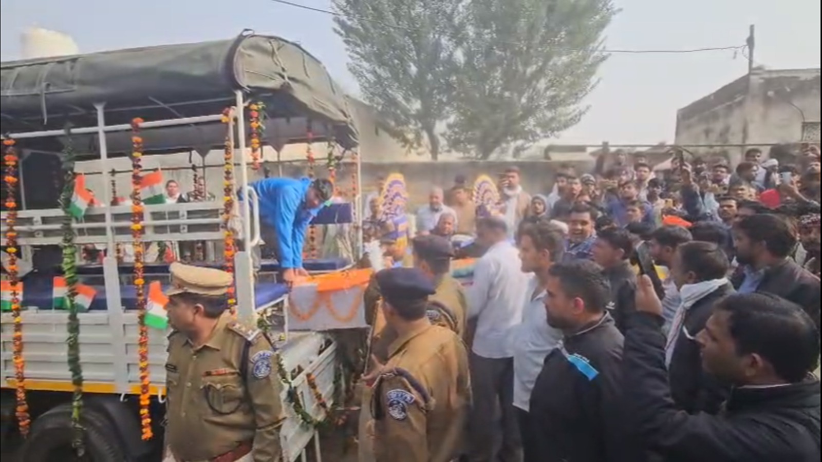 जिला मुख्यालय के साथ लगते हमीरी कलां गांव के रहने वाले एक और लाडले ने देश सेवा करते हुए अपने प्राणों की आहुति दी है। जिनका शनिवार को गांव में गमगीन माहौल में अंतिम संस्कार किया गया। जानकारी के अनुसार हमीरी कलां निवासी संजीव तेतरवाल सीआरपीएफ में कांस्टेबल के पद पर गुवाहाटी में तैनात थे। जिनकी दो दिन पहले गुरूवार को अचानक तबियत बिगड़ी। जिसके बाद उन्हें अस्पताल ले जाया गया। जहां से उन्हें हाई सेंटर पर रैफर किया गया। लेकिन इसी दौरान उन्होंने अंतिम सांस ली। शनिवार सुबह उनकी पार्थिव देह झुंझुनूं सैनिक कल्याण बोर्ड पहुंची। जहां से सैंकड़ों की संख्या में युवाओं ने तिरंगा रैली निकाली और रैली की अगुवाई में ही पार्थिव देह झुंझुनूं शहर से 13 किलोमीटर दूर हमीरी कलां गांव ले जाया गया। यहां पर सभी ने अपने लाडले के अंतिम दर्शन किए और अपने श्रद्धासुमन अर्पित किए। जयपुर से आई सीआरपीएफ की टुकड़ी ने गार्ड आफ आनर दिया। पूरे सैन्य सम्मान के साथ संजीव का अंतिम संस्कार किया गया। अंतिम यात्रा में शामिल हुए जनप्रतिनिधियों, अधिकारियों, सीआरपीएफ के जवानों ने भी पुष्प अर्पित किए। आपको बता दें कि संजीव तेतरवाल का अगले साल कांस्टेबल से हैड कांस्टेबल के पद पर प्रमोशन होना था। उन्हें सीआरपीएफ में भर्ती हुए 11 साल के करीब का समय हो गया था। हाल ही में बिहार चुनाव में दो महीने की ड्यूटी के बाद वे वापिस गुवाहाटी लौटे थे और अगले महीने दिसंबर में ही घर पर छुट्टी लेकर आने वाले थे। उनके पिता धर्मपाल सिंह तेतरवाल, शिक्षा विभाग से रिटायर डिप्टी डायरेक्टर है और मां बिमला देवी गृहिणी है। पत्नी पिंकेश भी गृहिणी है। पांच साल का एक बेटा दिशान है। जो उनके साथ ही गुवाहाटी रहते थे। लेकिन बिहार चुनाव में जाने से पहले पत्नी और बेटा, दोनों गांव आ गए थे। जिन्हें भी वापिस ले जाने के लिए वे दिसंबर में आने वाले थे। संजीव तेतरवाल के बड़े भाई विकास तेतरवाल, गांव में ही पंचायत शिक्षक है।